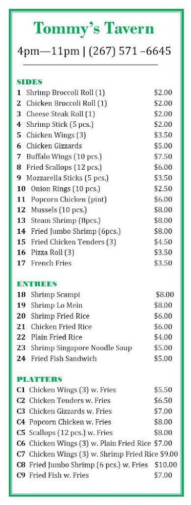 Welcome to Tommy's Tavern, your local hotspot located at 541 MacDade Blvd in Collingdale, PA! With a vibrant and relaxed atmosphere, Tommy's Tavern serves up a delightful array of cocktails, beers, and mouthwatering dishes, all at affordable prices. Join us for an unforgettable night of karaoke, live music, and sports with friends! Enjoy our happy hour discounts on food and drinks, plus a great selection to satisfy any craving. We offer both dine-in and takeout options, accessible seating, and fast service. Come for the fun, stay for the food—Tommy's Tavern is the place to be!